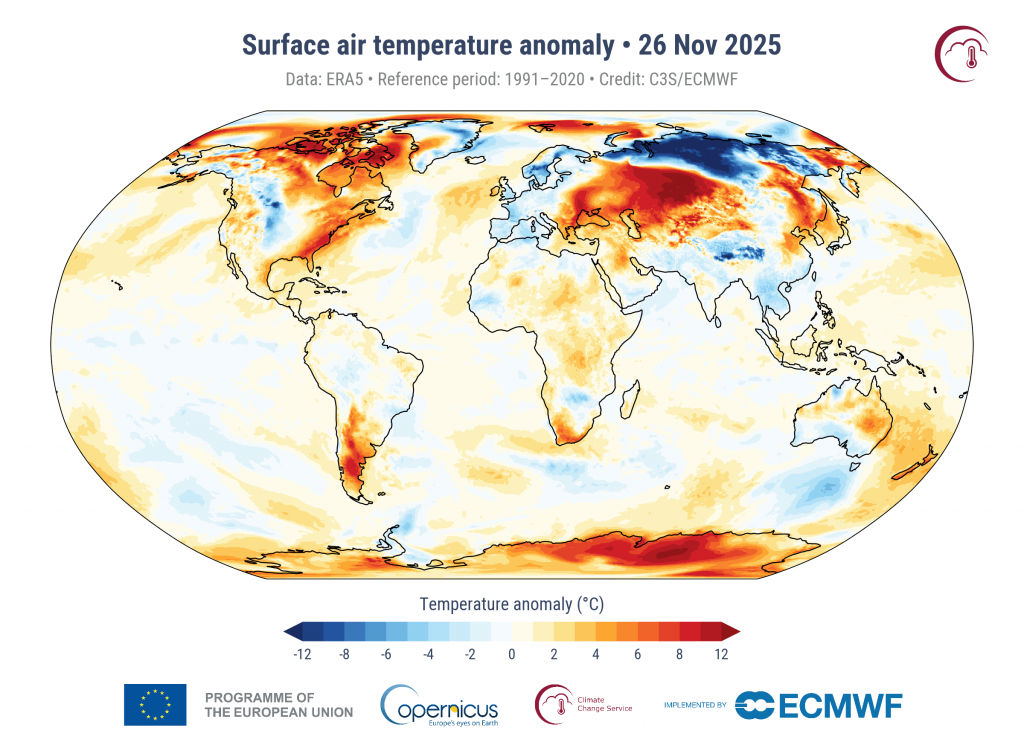 Izmerena maksimalna dnevna temperatura od 2,1 °C u Novosibirsku, 26. novembra, viša je za preko 5 °C od prosečne maksimalne novembarske temperature tokom 21. veka u ovoj oblasti (-3,1 °C). Ipak, moramo imati u vidu da je krajem meseca temperature tipično idu još dublje u minus, te da su samim tim odstupanja od proseka i veća, kao i da je korišćeni prosek (2000-2025) već obeležen klimatskim promenama.