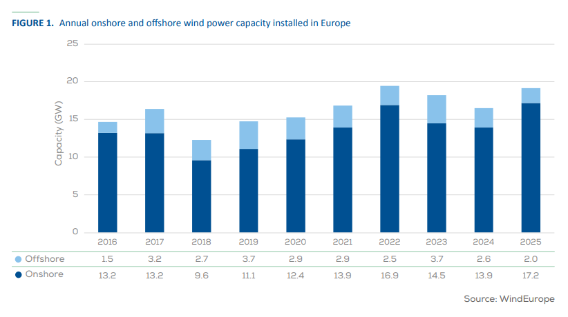 Ovo pokazuju podaci novog velikog izveštaja o napretku vetra u Evropi, koji otkriva da su evropske zemlje prošle godine instalirale 19,1 gigavata novih kapaciteta, uz rekordne rezultate u gradnji vetroelektrana na kopnu